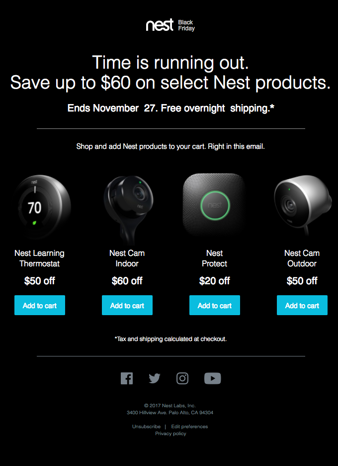 - The limited-time sale is clear: They list the special offer “save up to $60” at the top of the email to emphasize what customers could miss if they don’t act soon.